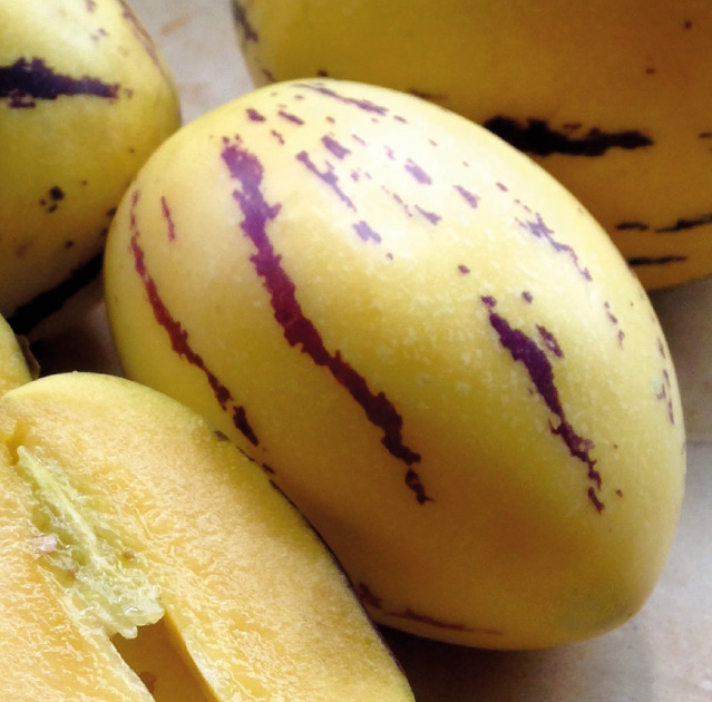 El pepino dulce, también conocido como pepino melón, es una fruta andina, de sabor suave muy similar al del melón.