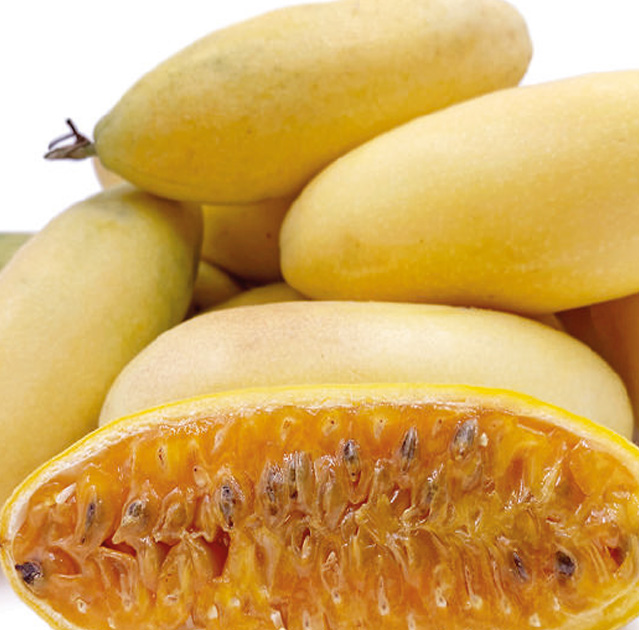 La granadilla crece en una planta trepadora de la familia de los frutos de la pasión. Es muy similar al maracuyá, pero de sabor completamente distinto, tiene un sabor tenue y muy dulce.