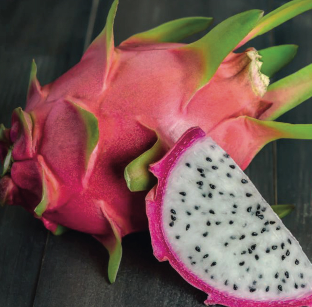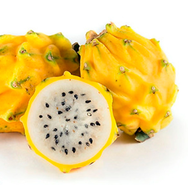 También conocida como fruta del dragón, por su evidente aspecto, la pitahaya es una fruta originaria de América, proveniente de un cactus. Su sabor es dulce y levemente ácido.